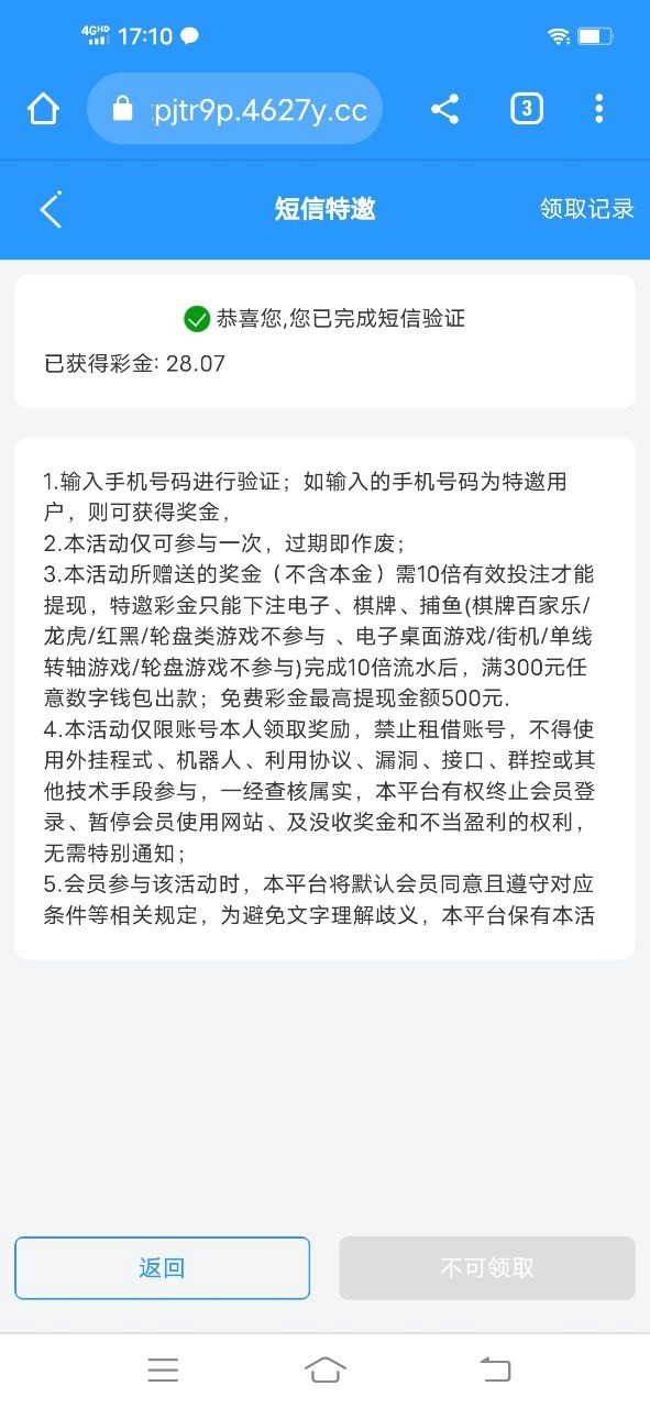 周密的计划 【新葡京4627】自助输入手机号碰瓷特邀送28 到账情况:自测【充值后果自负】 领取方式:自助输入手机号碰瓷特邀送28 安全系数:低 平台资历:未知 会员评分:★☆☆☆☆ 申领网址:https://amxpjtyd1.puancekai.com:4627/ 提现要求:最低提现额度为100元 图例介绍
